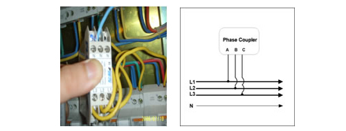 PLC-BUS system, in some cases, requires some auxiliary equipment. Generally used more is a three-phase coupler. In case you need to use three-phase power coupler, its role is to receive signals and then transmit simultaneously to each phase of the amplified. Specific wiring below.